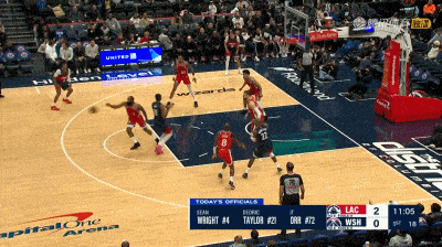 易边再战,乔治和卡林顿连得4分,祖巴茨补篮得手。萨尔和哈登先后得手,萨尔乔治;连续命中三分,约翰逊抛投命中拉开到9分。祖巴茨投篮得手,约翰逊和桑德斯先后命中三分。科林斯和萨尔接连扣篮得手,邓恩连得4分,卡林顿命中三分,哈登连续突破独得6分,米勒抛投造成干扰球,哈登两罚全中带队打出10-0反超,乔治先是正面命中三分,随后压哨打板命中三分,不过裁判回看后因为超时取消,快船队79-81落后奇才队结束第三节比赛。
